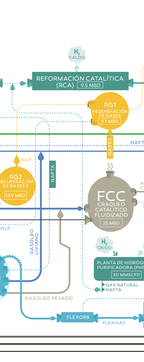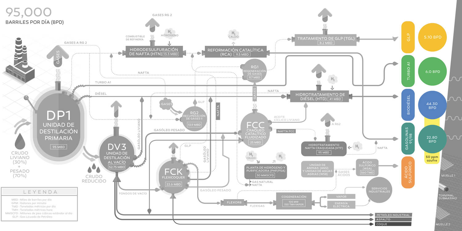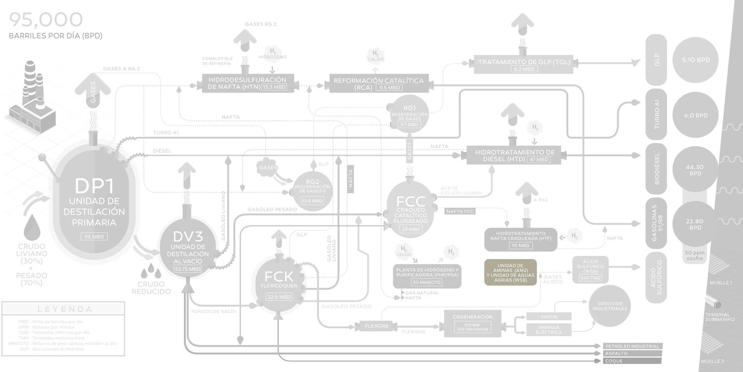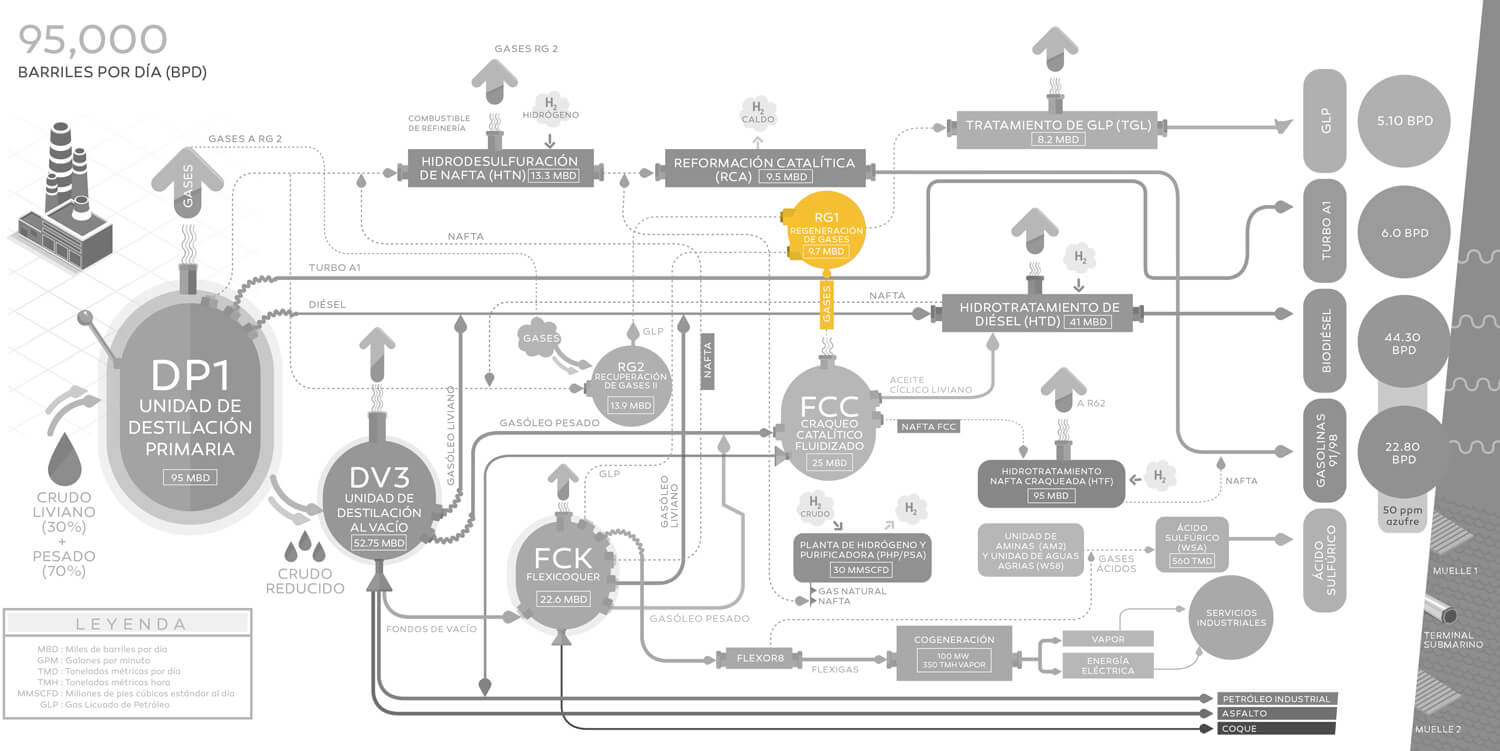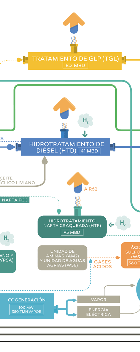 Planta de Hidrógeno (PHP): Produce hidrógeno y purifica el generado de la RCA para su posterior uso en las unidades desulfurizadoras.