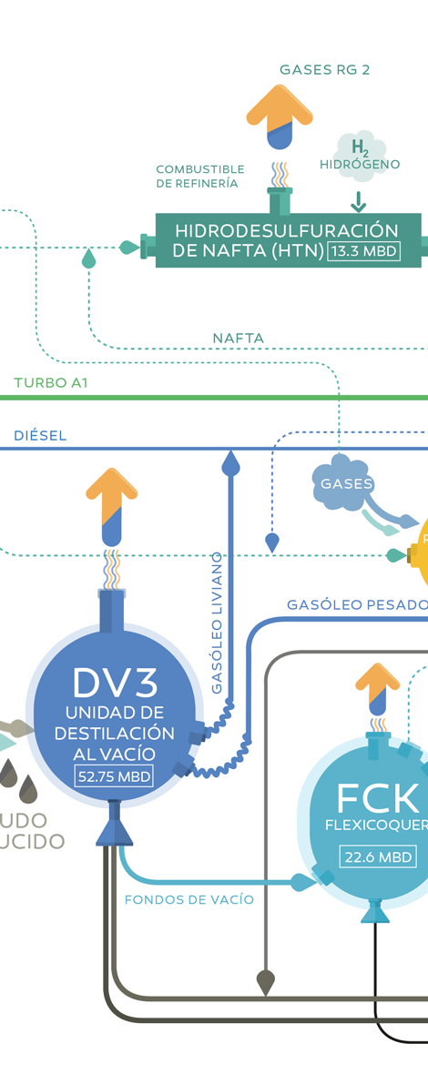 Convierte los residuos de la DV3 en productos de mayor valor comercial: GLP, gasolina, diésel, gasóleo pesado flexigas y coke.