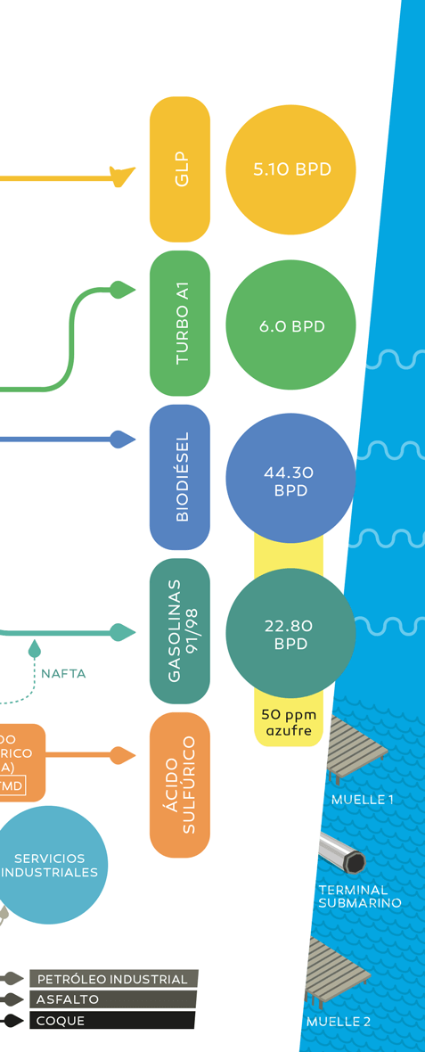 - Muelle de Carga Liquida 52,000 DWT (Tonelaje de peso muerto).